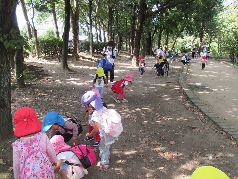 今週は秋発見遠足がありました。子天使ちゃん達の足で約25分の「上坂部西公園」へ出発ー!