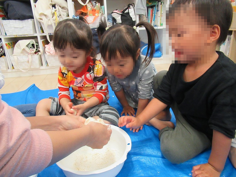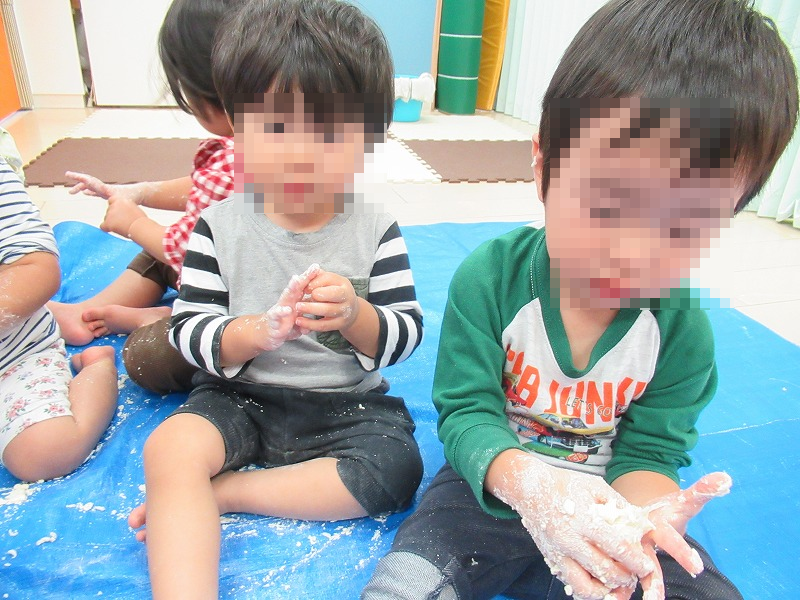 この日は小麦粉の触感体験をしました。