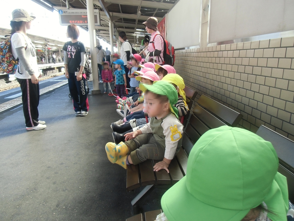 電車を待つ子天使ちゃん達、ちょこんと座って待っています(笑)。(右下写真)