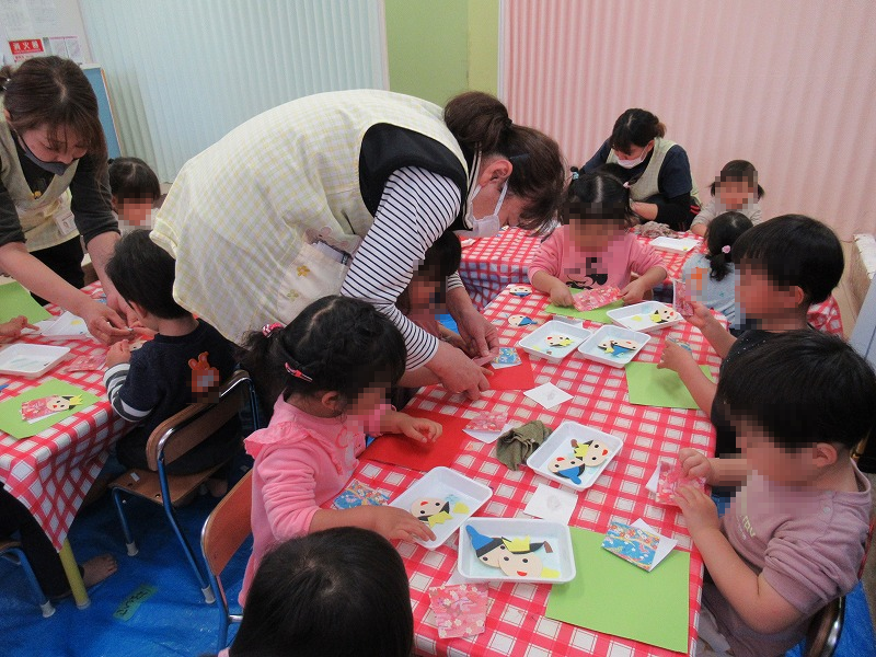 今週の工作はおひなさま制作をしました(^-^)(あっ、昔の学校や園では「製作」の文字を使っていましたが、ウェリナ保育園では「制作」の文字を使います)