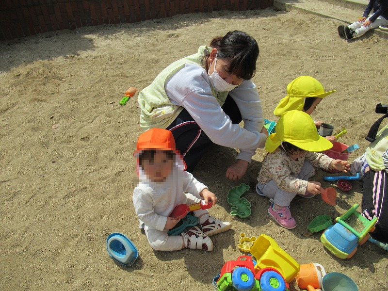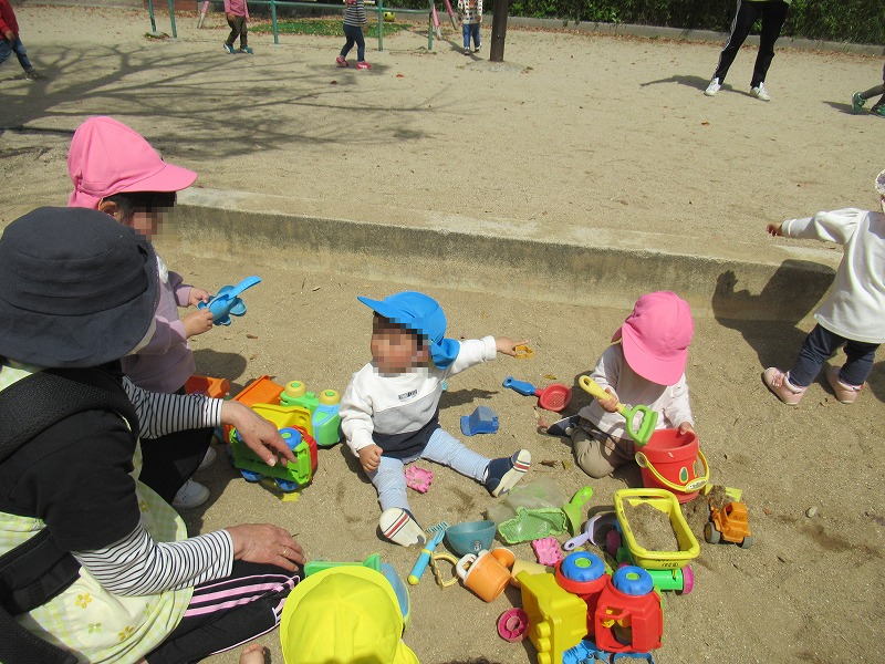 ウェリナでは雨の日以外は毎日お外に出かけます。それは入園初日でも変わりません(^-^)。室内では泣いていた新入園児もお外に出ると「ご機嫌さん」になりますから。