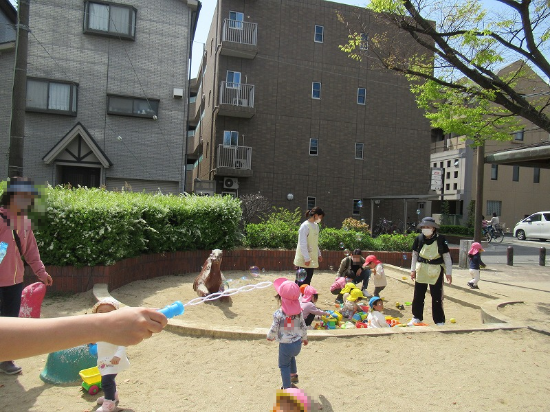 右下写真、シャボン玉を作り続けていた先生は腕がパンパンになったんですって笑