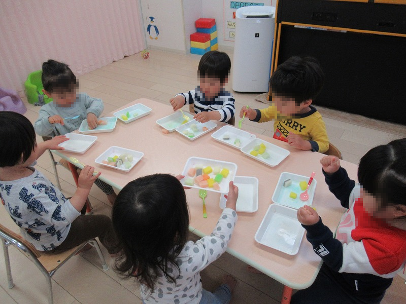 写真はスプーン遊び。スプーンを使ってスポンジを隣のお皿に移します。「スプーン遊び」「おはし遊び」「かたはめ遊び」等々・・モンテッソーリ保育と似ていますね(^-^)。モンテッソーリ教育って新しい教育方法ではないいんですよ(笑)日本の幼児教育では昔からやっていることなんです。
