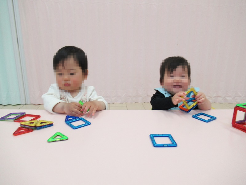 右下写真はようやく泣かなくなって遊ぶようになった新入園児2人組、最近は笑顔が目立つように(笑)
