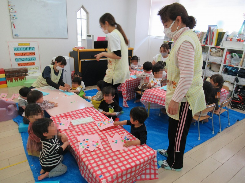 ウェリナのブログでは「製作」ではなく「制作」の文字を使います。一人一人がアーティストである子ども達には「制作」の方が似合っていると思うので(^-^)。先生から「こいのぼりの」お話を聞いたら、制作の開始です。子ども達の真剣な表情がたまりません(^-^)。