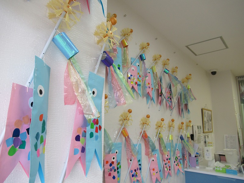 たくさんの個性豊かなこいのぼりが完成しました。こいのぼりのように、みんな元気で大きくなぁれ(^-^)/