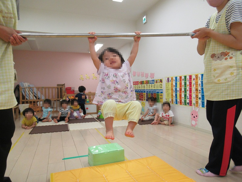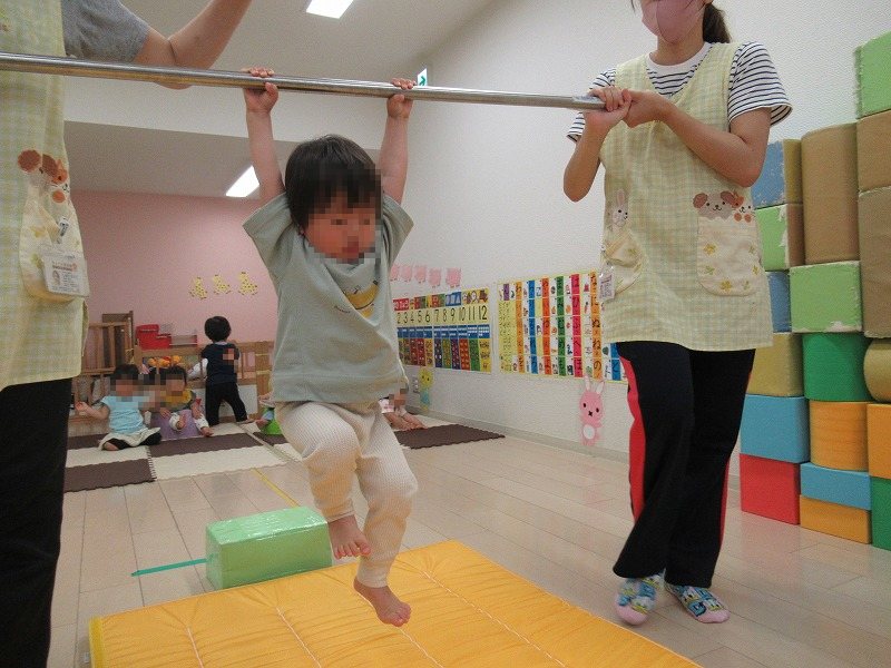 下の写真は雨の日の室内遊び。雨の日でもストレスが溜まらないように、しっかり身体を使おうね(^o^)