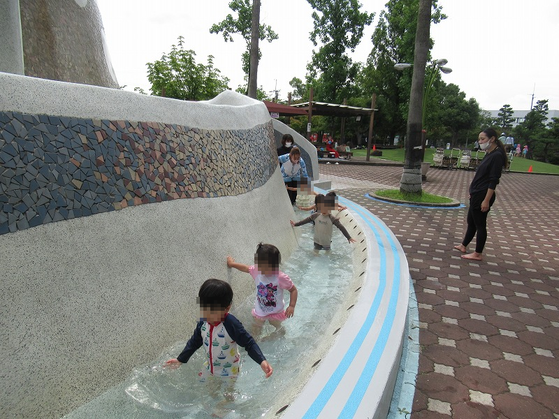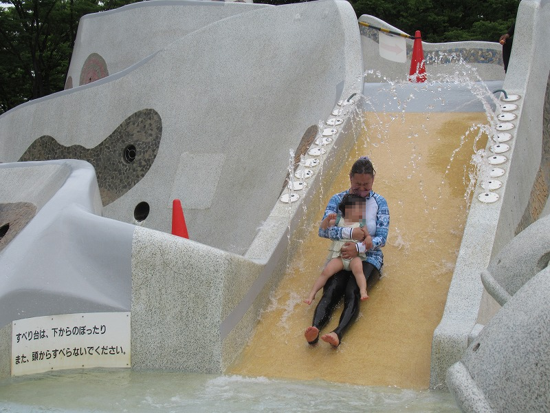 水路を探検したり、巨大水鉄砲を2人で動かしたり、スライダーを滑ったり♪