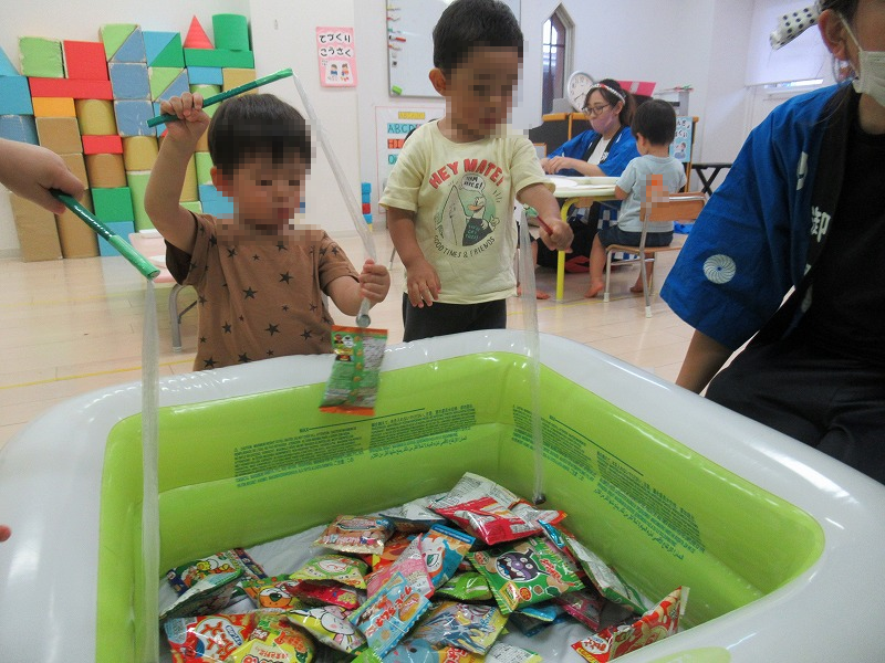 写真は人気のお菓子釣り!