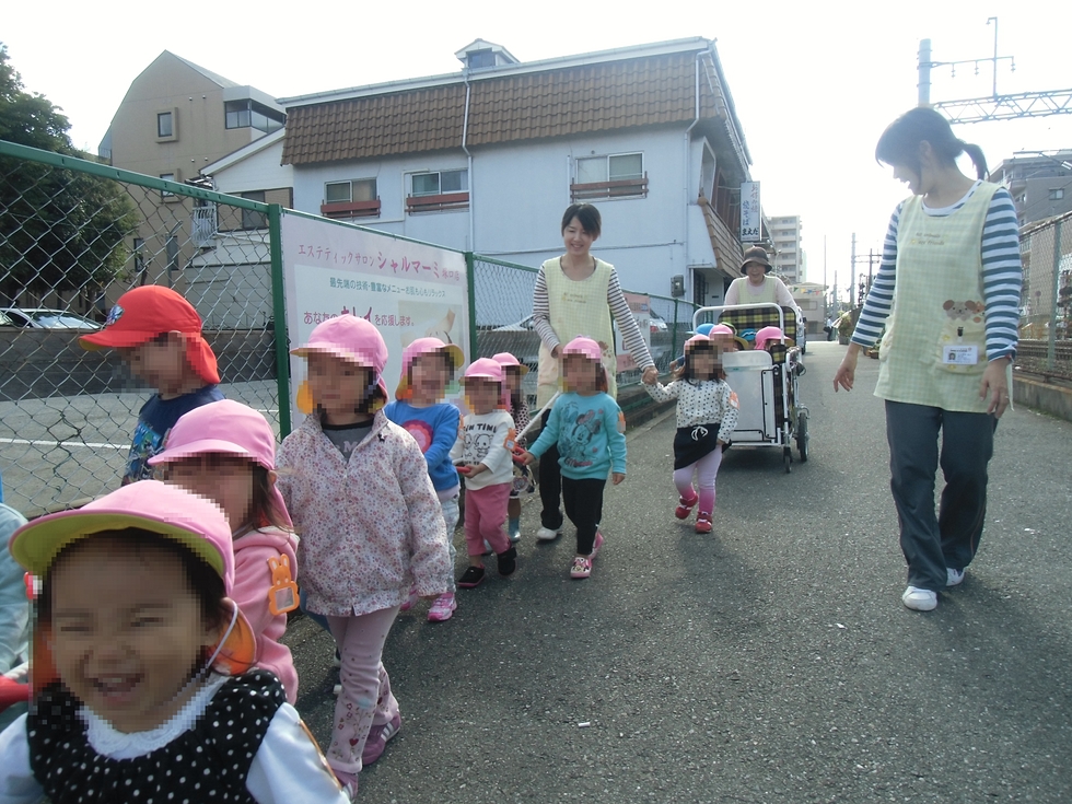 レッスンの後は水分補給をしたらお外にお出かけです。(右下写真)♪みんな大好き♪お外あそびぃ〜、行ってきまーす♪(^-^)