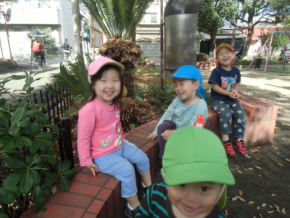 4人の子天使ちゃんが同時に園長の側に来て腰かけます。(写真)