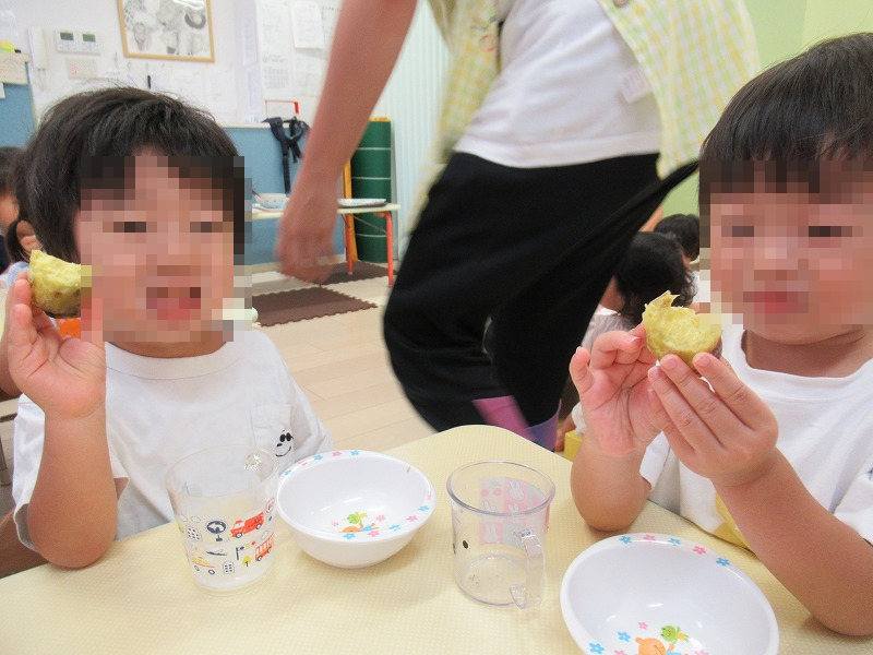 おやつはもちろん蒸し芋♪自分たちで掘り出したお芋、特別においしいねー(^o^)