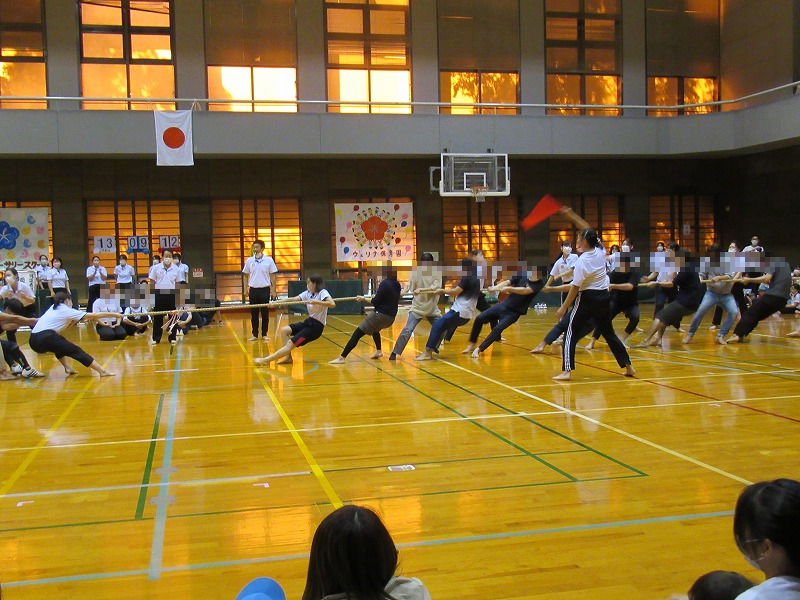 最後の競技は運動会の定番「つなひき」。各園の男女比・人数を合わせてスタート!塚口ウェリナのお父さんお母さん、ねばりにねばって怒涛の3連勝〜すごい!(^0^)/