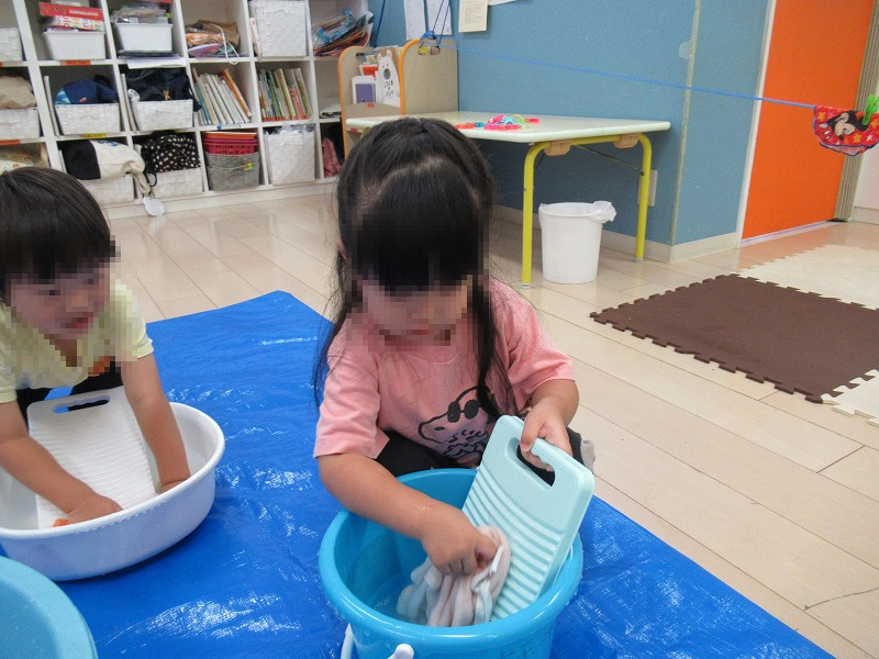 この日の午後は「選択ごっこ」。ごっこと言っても本当にお洗濯をするんですよ(^-^)。