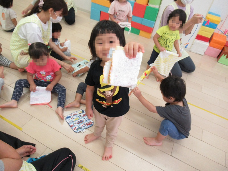 乾いた洗濯物をたたむときの子天使ちゃん達、なぜかみんなニヤニヤ顔でした(^-^)。