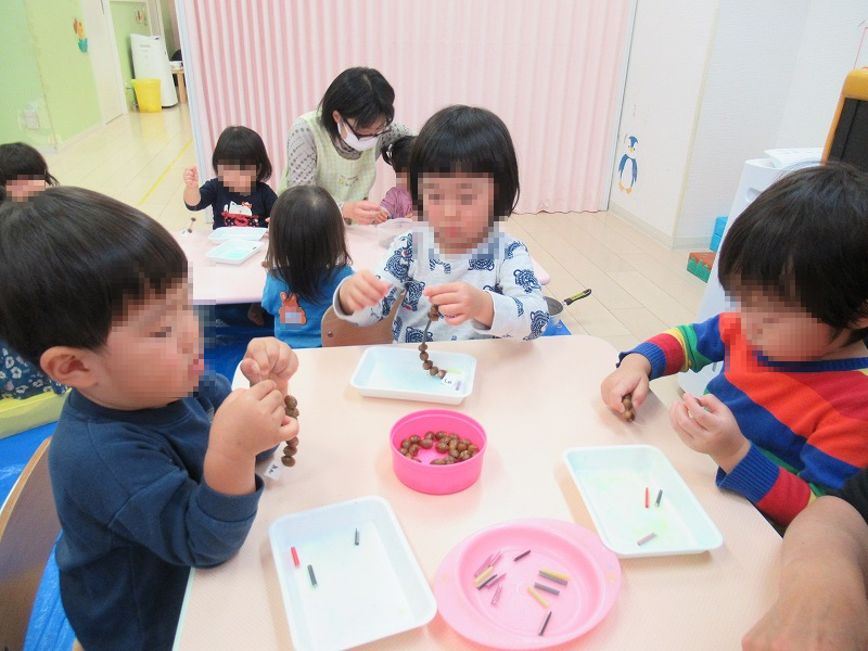 子天使ちゃんたち真剣な表情で糸通しに取り組んでいます(^-^)/。
