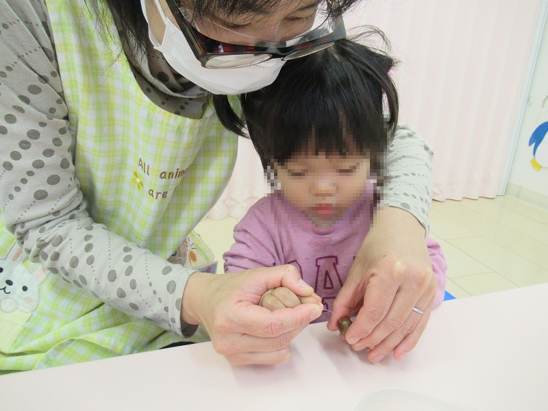 先日みんなで拾ったたくさんのドングリ、もちろんウェリナでは続きがあります(^-^)。