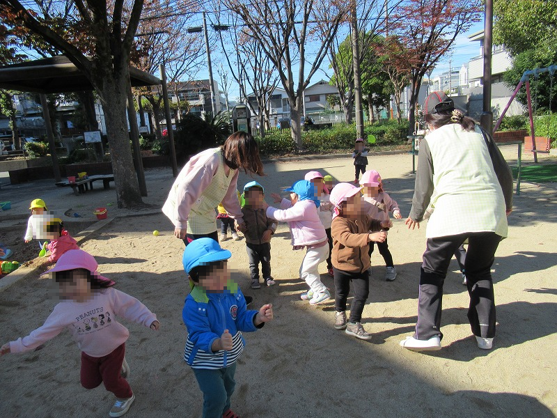 お外ではムックリ熊さん(鬼ごっこのチーム戦のようなもの)が流行っています。