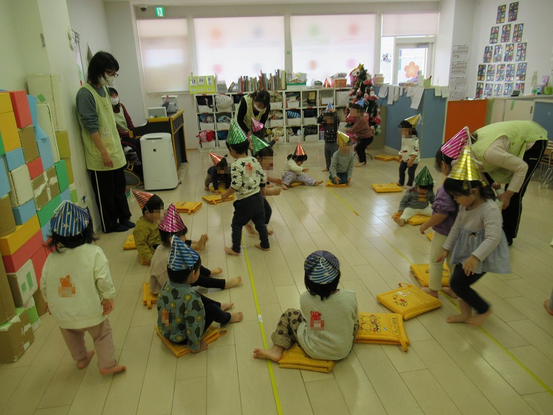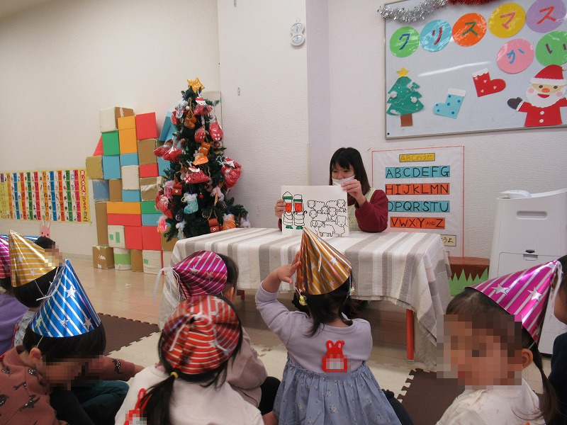 イエス様の紙芝居。子天使ちゃん達、興味深く聞き入っています(^-^)。