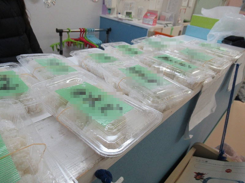 もち米洗いから始まって、つきたてのお餅をちぎり、餅取り粉で形を整えて、お家へのお土産パックに入れるまで、子天使ちゃん達は頑張ります(^-^)。