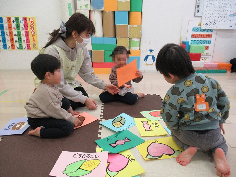 写真は数字遊びとかるた取り(^-^)。子ども達、真剣アンド楽しそうです♪