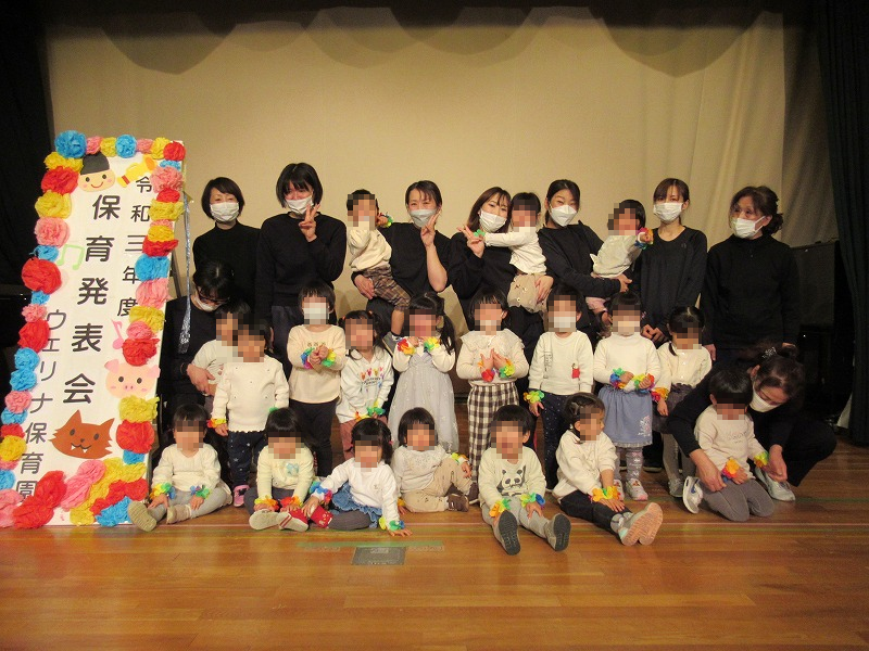 本番に強い子、たくさんの人に見られて緊張しちゃう子、それぞれが大切な個性なんです(^-^)。いろんな個性の子ども達が手を取り合ってお歌を楽しむ姿に園長は大感動です。