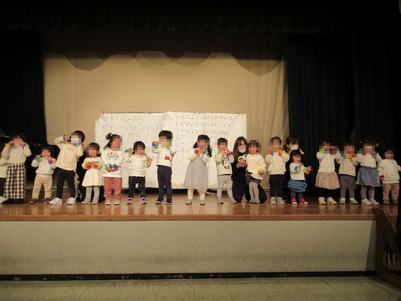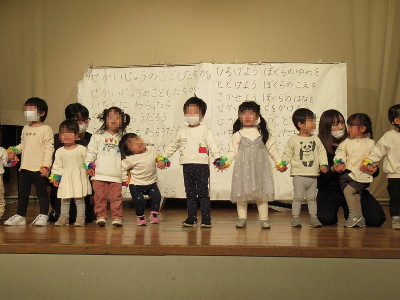 最後の出しものは全園児のお歌「世界中の子ども達が」♪